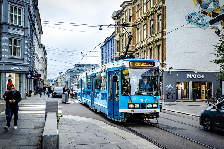 Søndag 27. september er trikkens linje 11 og 12 tilbake i Bogstadveien og over Frogner (foto: Sporveien).
