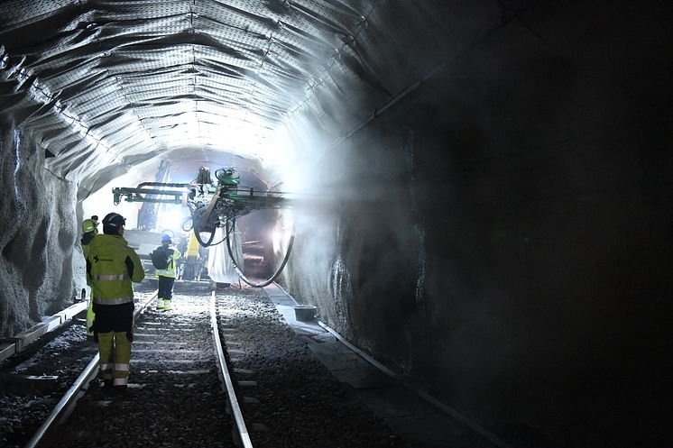 Trygg reise Mer enn 200 sikringsbolter er festet for å sikre tak og vegger, slik at T-banen kan kjøre trygt gjennom tunnelen. Foto Jan RustadSporveien.JPG