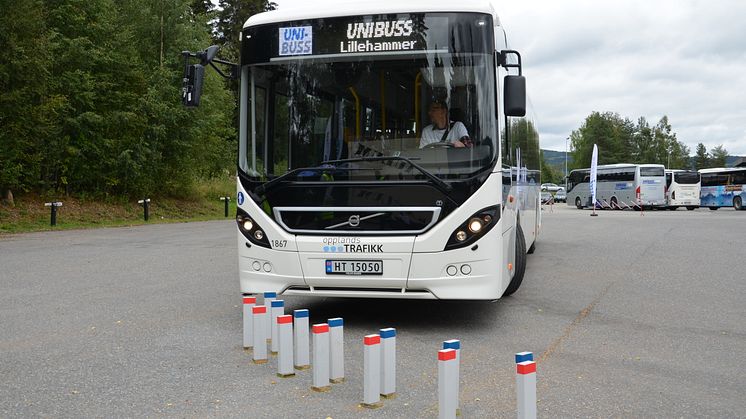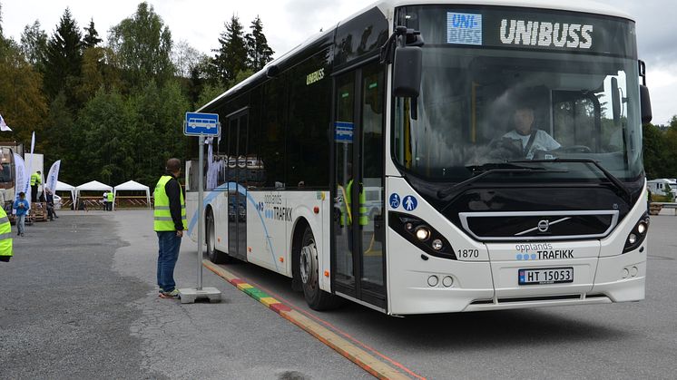 Cato Hellesjø, Guri Melby, Trine Skei Grande, Erna Solberg og Stian Berger Røsland foran hydrogenbuss