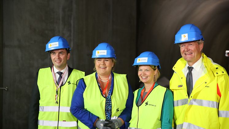 Stian Berger Røsland, Erna Solberg, Guri Melby og Cato Hellesjø
